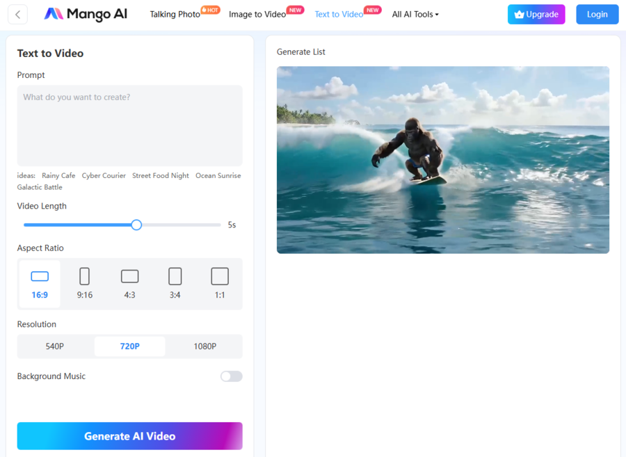 Mango AI's Text to Video Tool Converts Text Prompts into Realistic Clips