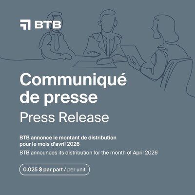BTB REIT Announces its Distribution for the Month of April 2026